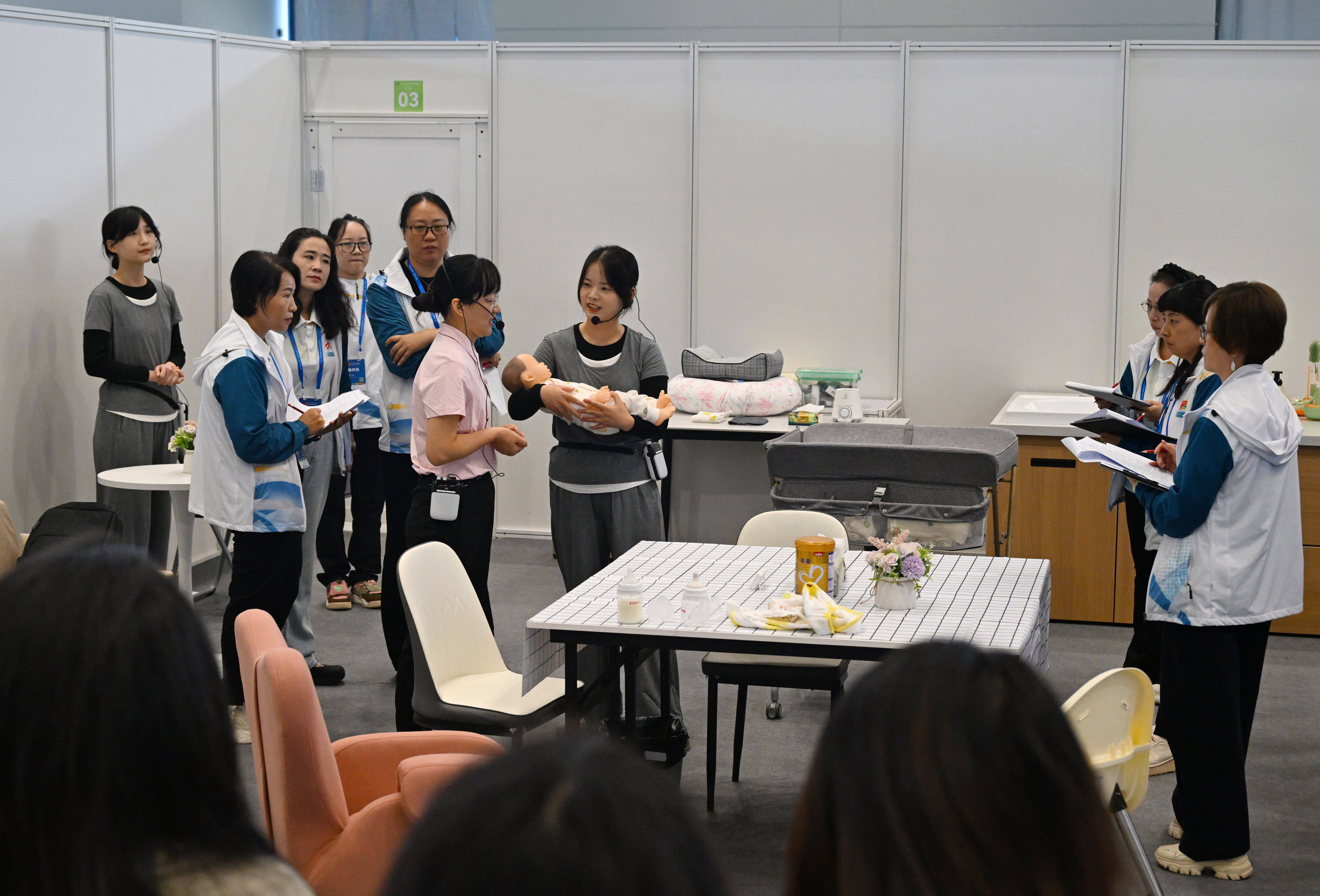 9月20日,选手在育婴项目比赛中。新华社记者 郝源 摄看活动,技能魅力可观可触——